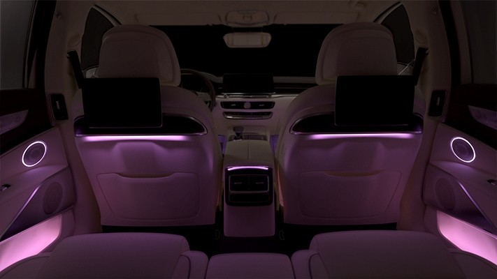 We wnętrzu zaś, producent obiecuje wysokiej klasy materiały przy minimalistycznym wystroju, który pozwoli kierowcy i pasażerom cieszyć się spokojną i miłą podróżą. Kabinę wykończono przyjemnymi w dotyku materiałami premium, w tym skórą, drewnem i metalem. K900 wyposażono również w nowoczesną technologię, w tym 12,3-calowy ekran systemu multimedialnego oraz światło ambientowe, które można ustawić w jednym z 64 odcieni. W centralnym punkcie, pomiędzy nawiewami, znalazł się zegar analogowy szwajcarskiej firmy Maurice Lacroix.